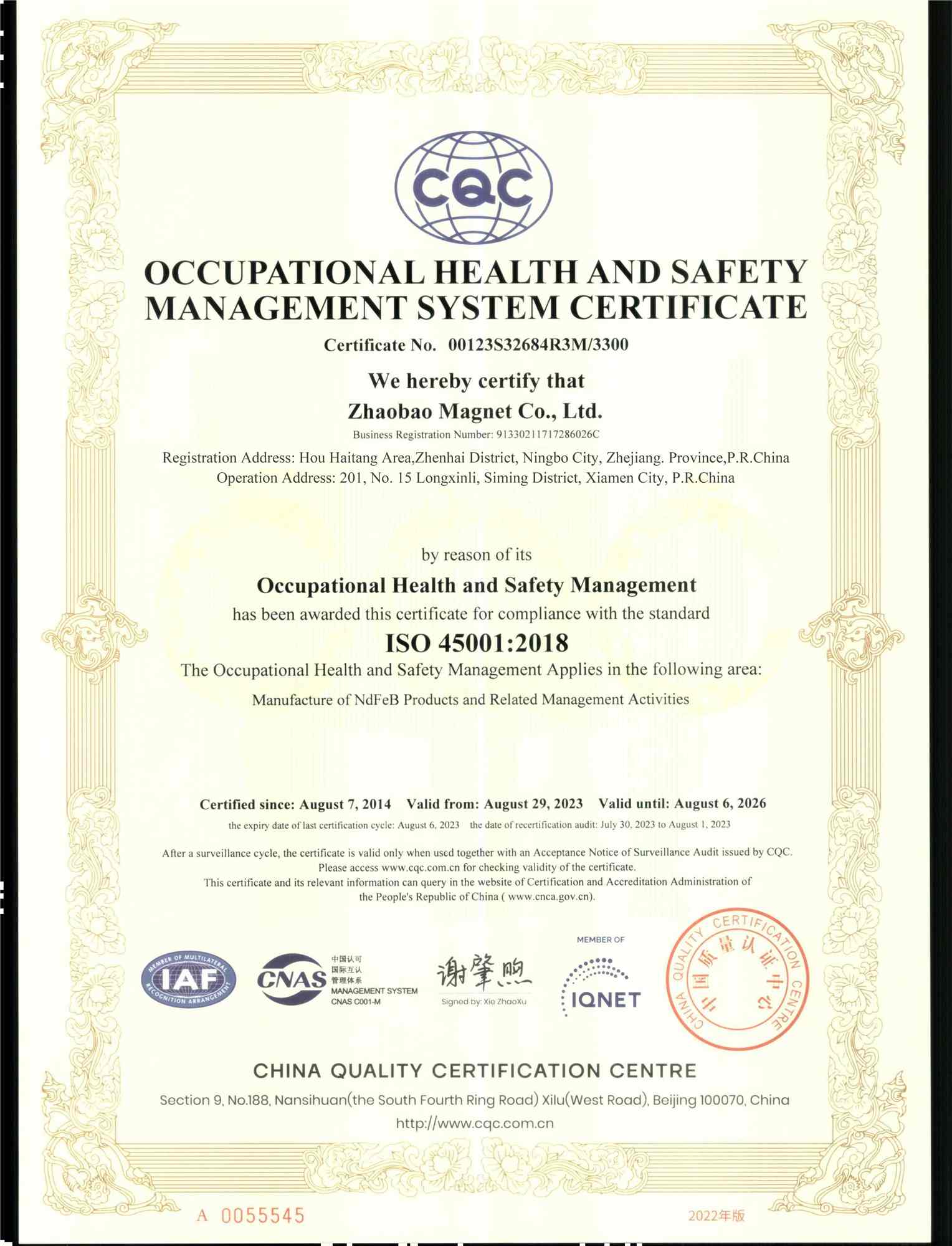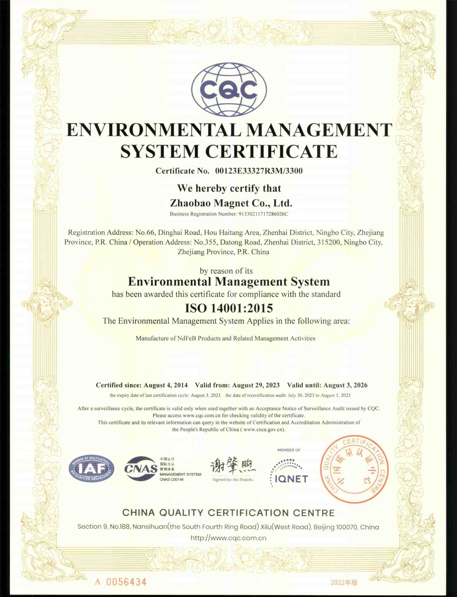 تتوافق منتجات مغناطيس النيوديميوم لدينا بشكل كامل مع المعايير الدولية، والمعتمدة من IATF16949 (صناعة السيارات)، وISO9001 (إدارة الجودة)، وISO14001 (إدارة البيئة)، وROHS، وREACH، وCE، وCPC، وEN71، وASTM، وCHCC. تؤكد هذه الشهادات أن مغناطيسات النيوديميوم الخاصة بنا تلبي معايير السلامة والبيئة والأداء الصارمة، مما يجعلها مناسبة للتصدير إلى أوروبا وأمريكا الشمالية وجنوب شرق آسيا دون حواجز تنظيمية.
