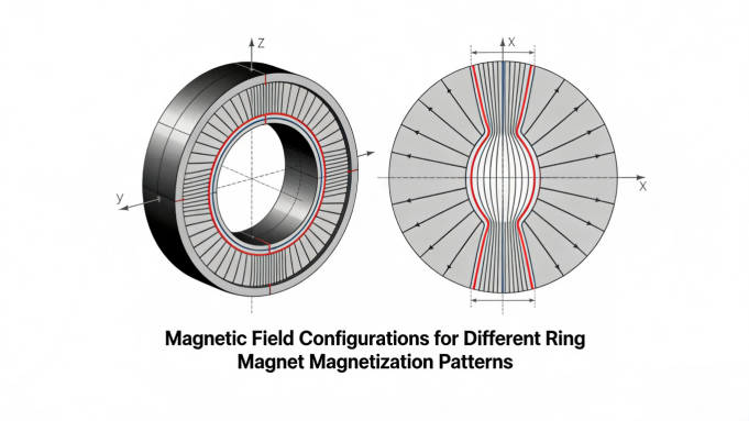 المغنطة الشعاعية:أقطاب مغناطيسية على الأسطح الأسطوانية الداخلية والخارجية. يُفضل لمحركات التيار المستمر بدون فرش، والمحركات المؤازرة، وأجهزة التشفير الدوارة حيث يكون المجال المغناطيسي موازيًا لمحور الدوران.